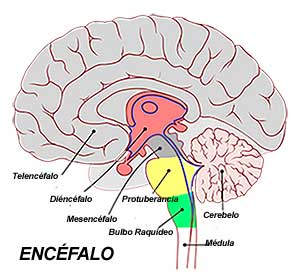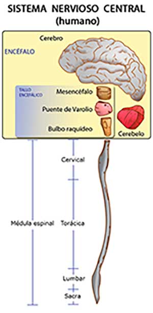 Encefalo: Está compuesto por el Cerebro, el Cerebelo y el Tallo central. Está protegido por los huesos del cráneo.